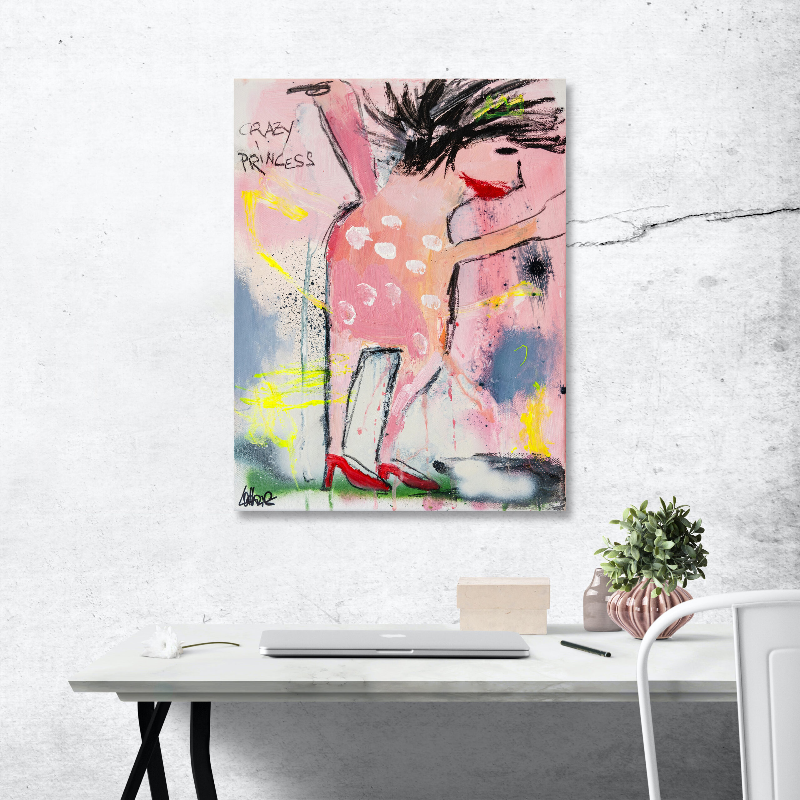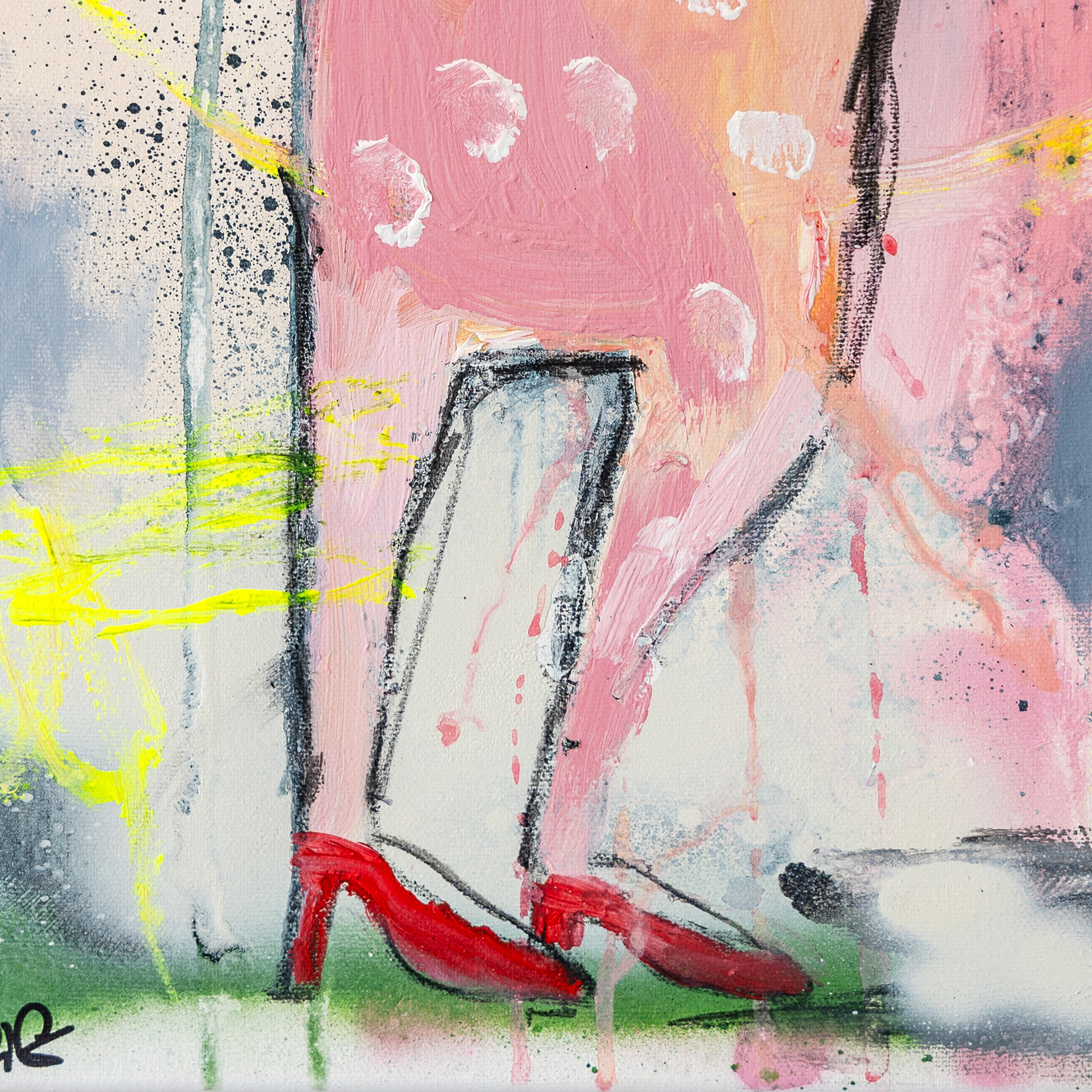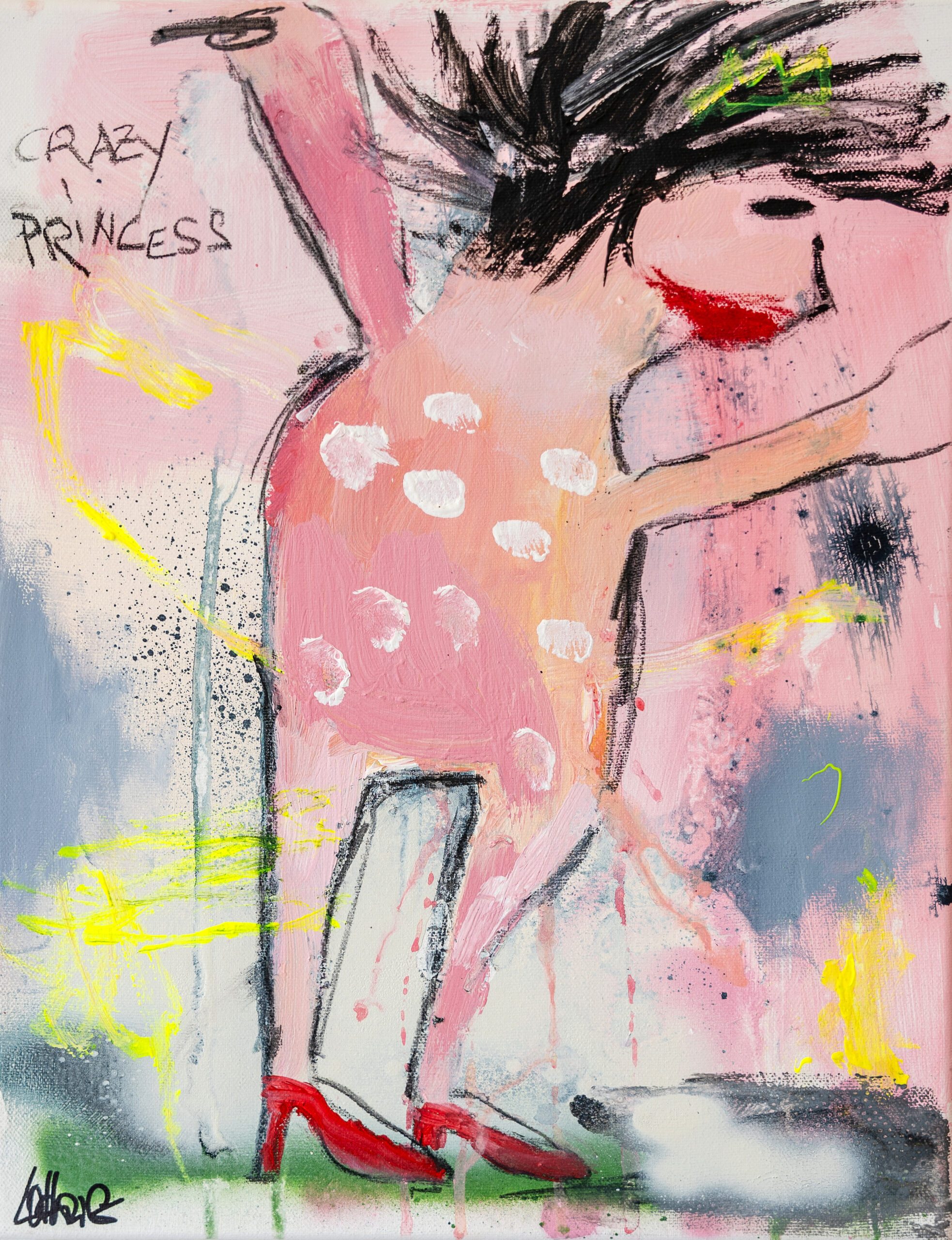 Ein tänzerischer Balanceakt zwischen Farbe, Form und Linie, Fläche und Raum, Abstraktion und Gegenstand, Bild und Schrift. Die Leichtigkeit ist es, die uns in Lohrigs Werken entgegenspringt. Die Farben mit Lust aufgetragen, werden häufig mehrfach überarbeitet; immer bleiben die Spuren der unteren Schichten wahrnehmbar. Sie arbeitet mit Sprühfarben, Neon, pink.