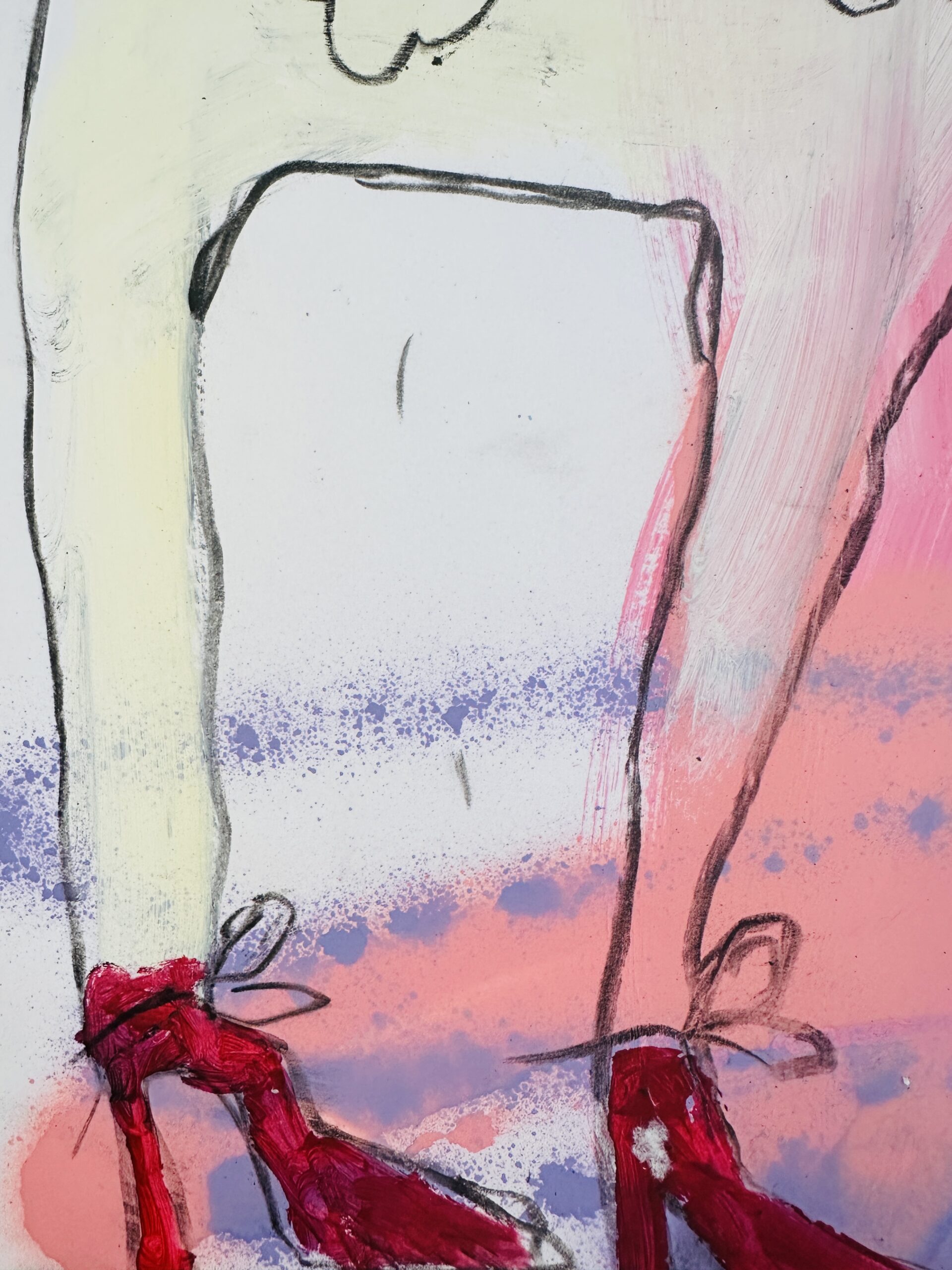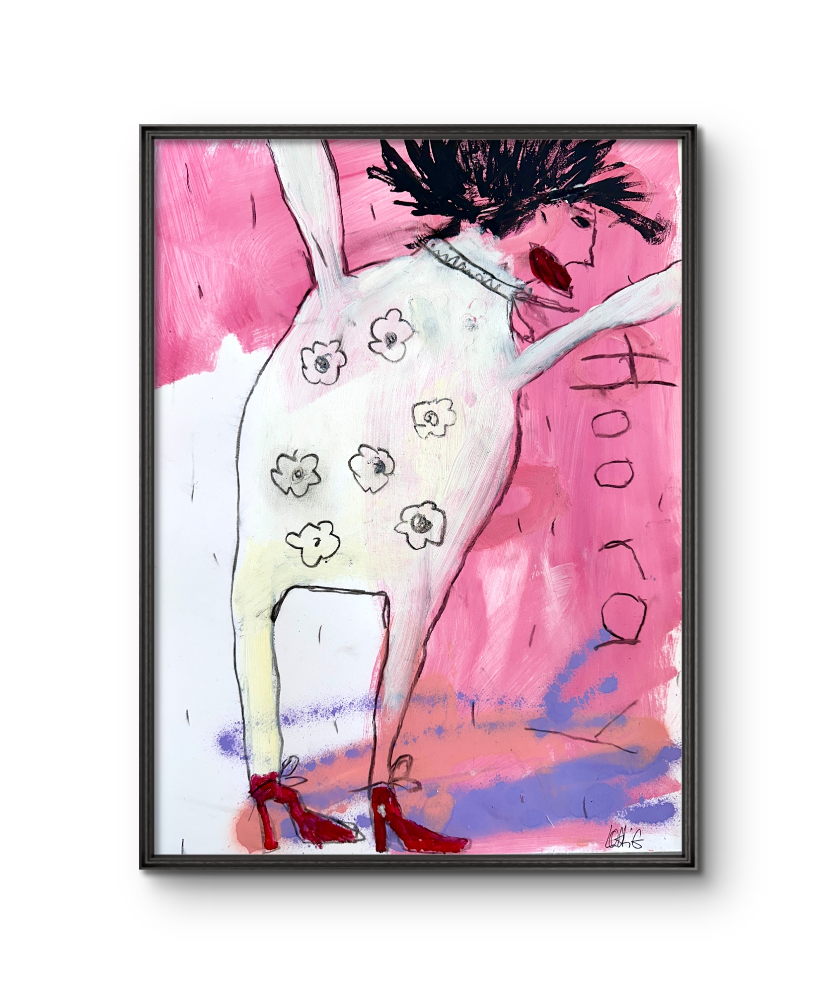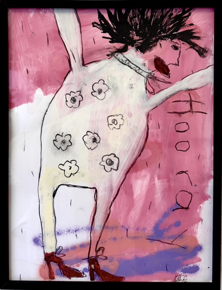 Ein tänzerischer Balanceakt zwischen Farbe, Form und Linie, Fläche und Raum, Abstraktion und Gegenstand, Bild und Schrift. Die Leichtigkeit ist es, die uns in Lohrigs Werken entgegenspringt. Die Farben mit Lust aufgetragen, werden häufig mehrfach überarbeitet; immer bleiben die Spuren der unteren Schichten wahrnehmbar. Sie arbeitet mit Sprühfarben, Neon, pink.