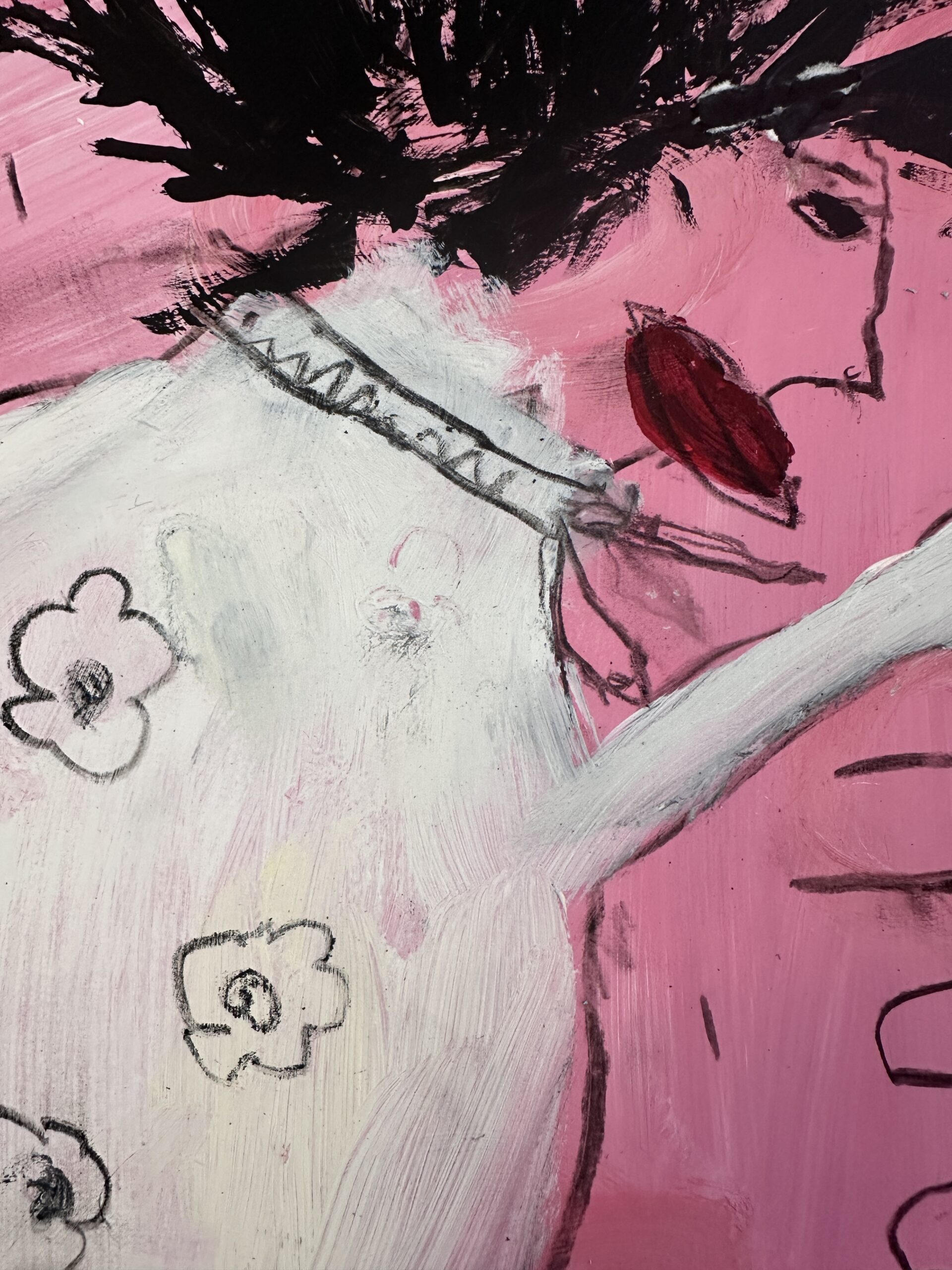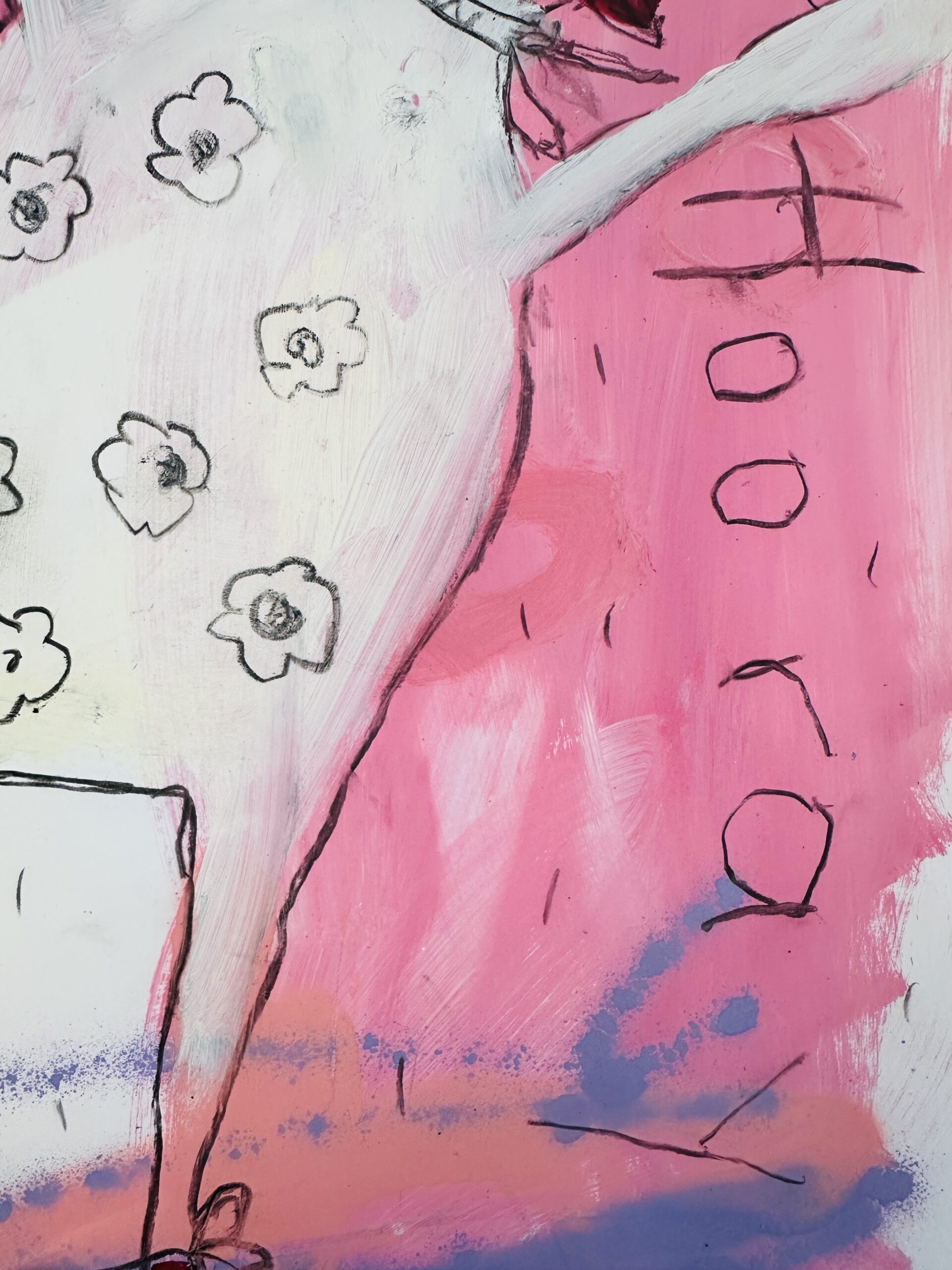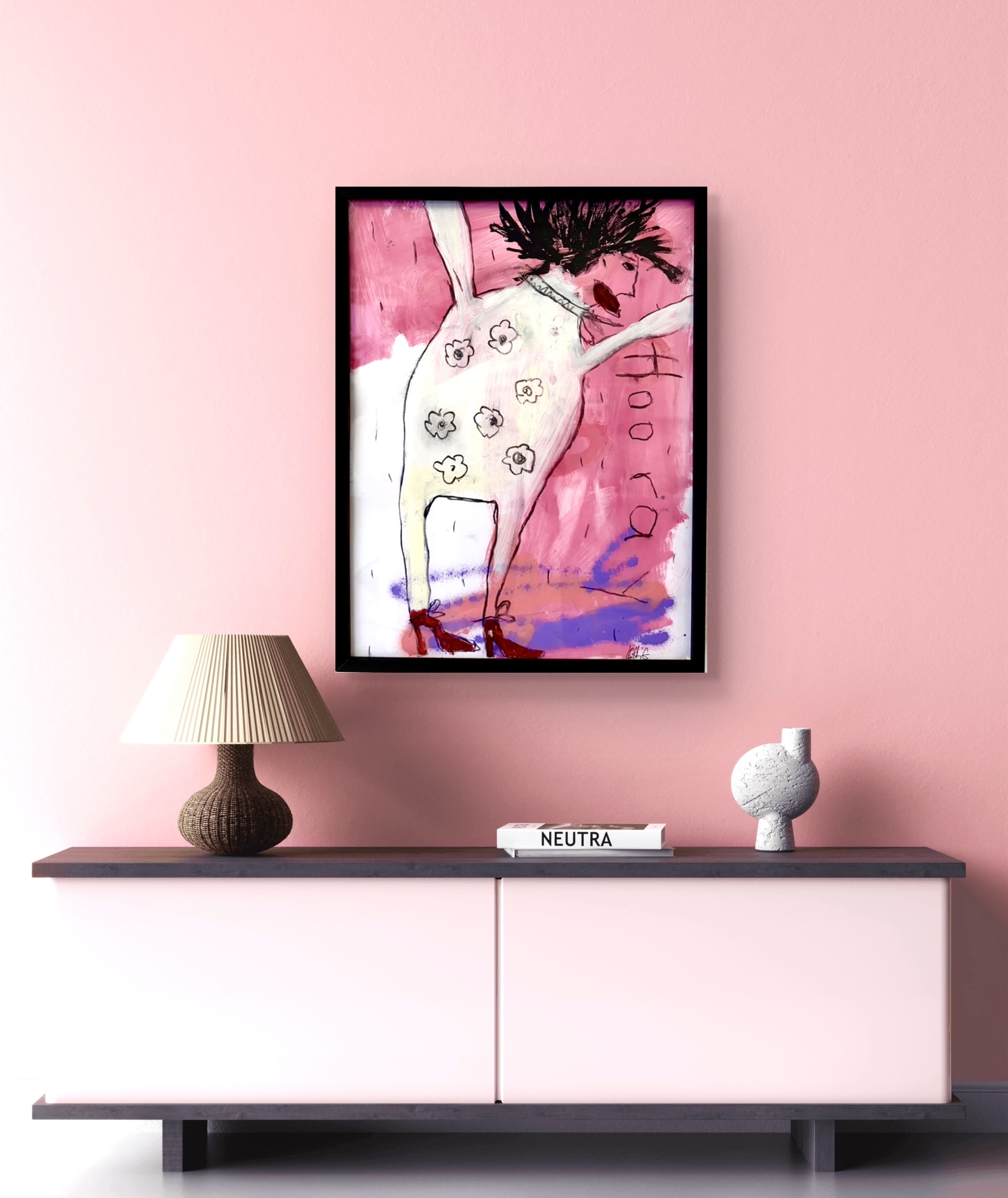 Ein tänzerischer Balanceakt zwischen Farbe, Form und Linie, Fläche und Raum, Abstraktion und Gegenstand, Bild und Schrift. Die Leichtigkeit ist es, die uns in Lohrigs Werken entgegenspringt. Die Farben mit Lust aufgetragen, werden häufig mehrfach überarbeitet; immer bleiben die Spuren der unteren Schichten wahrnehmbar. Sie arbeitet mit Sprühfarben, Neon, pink.
