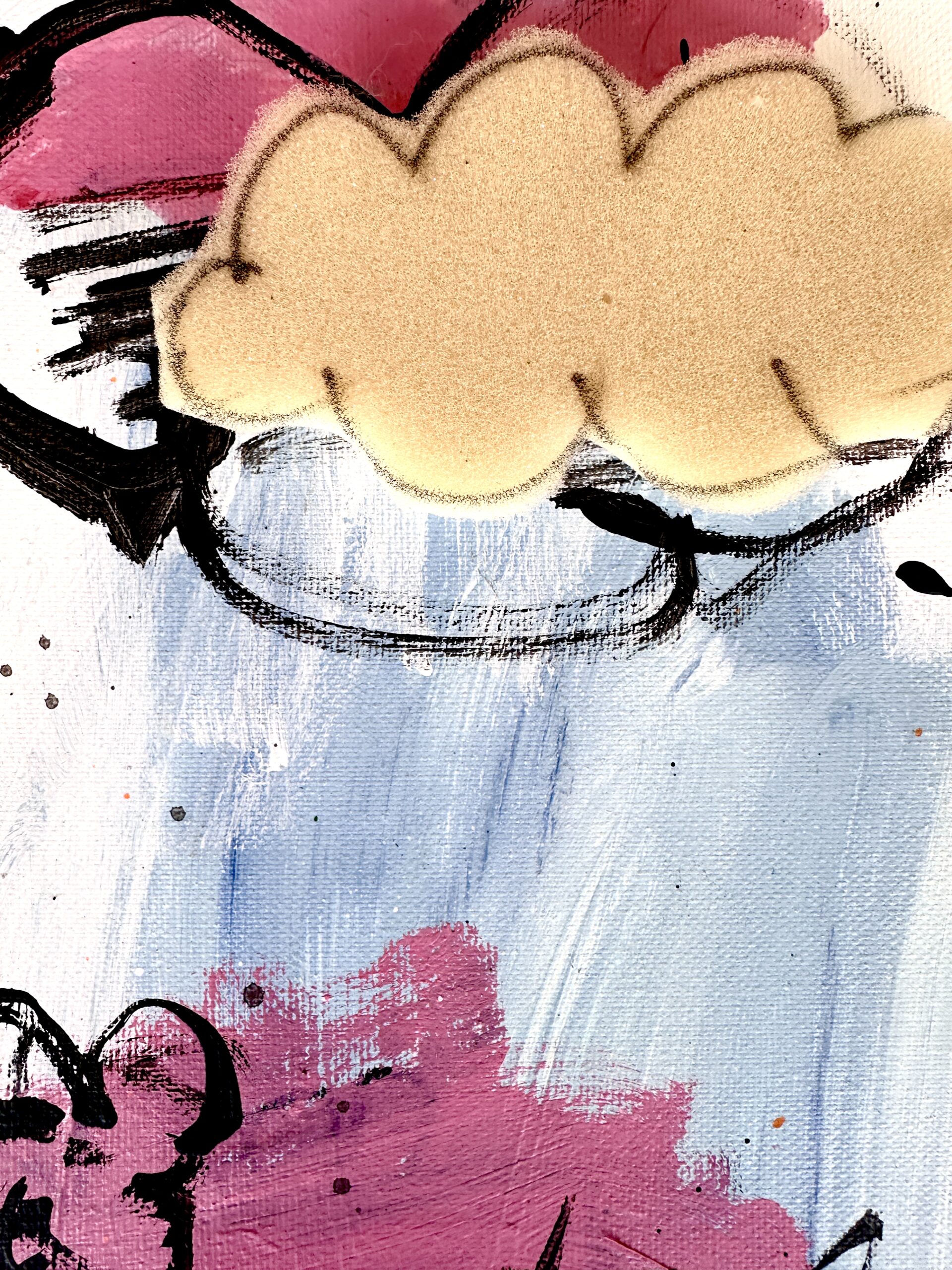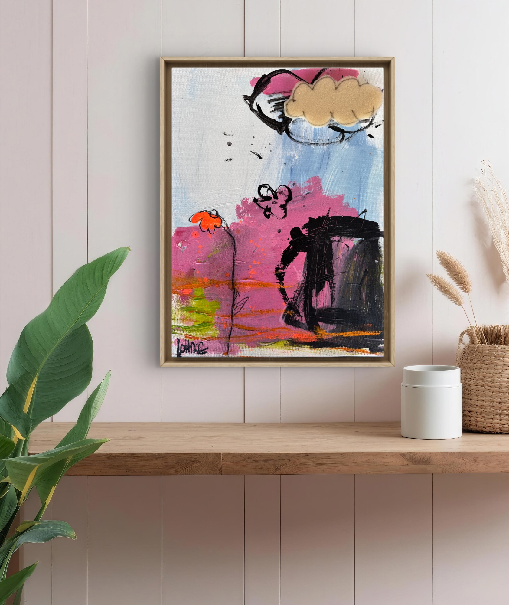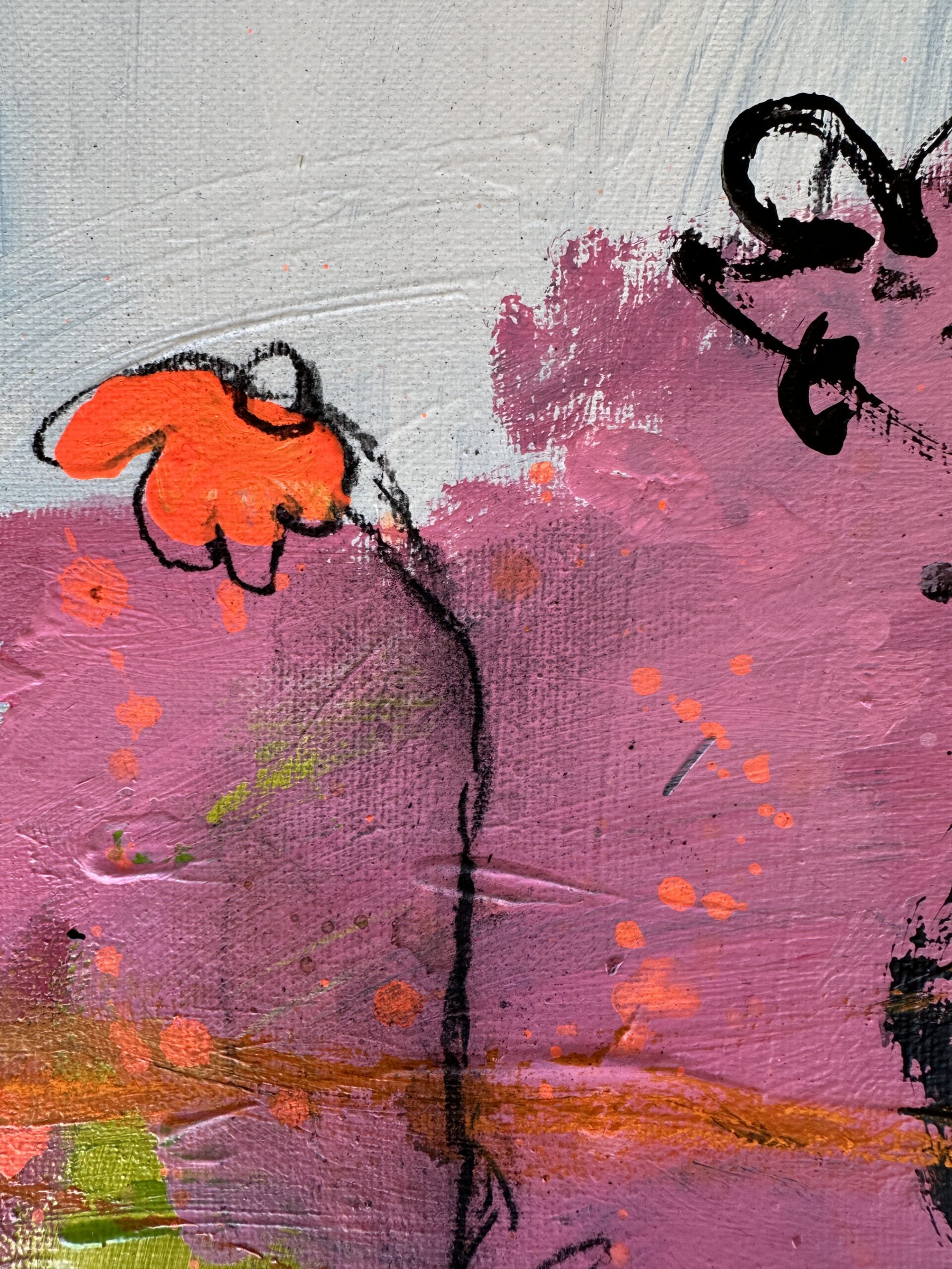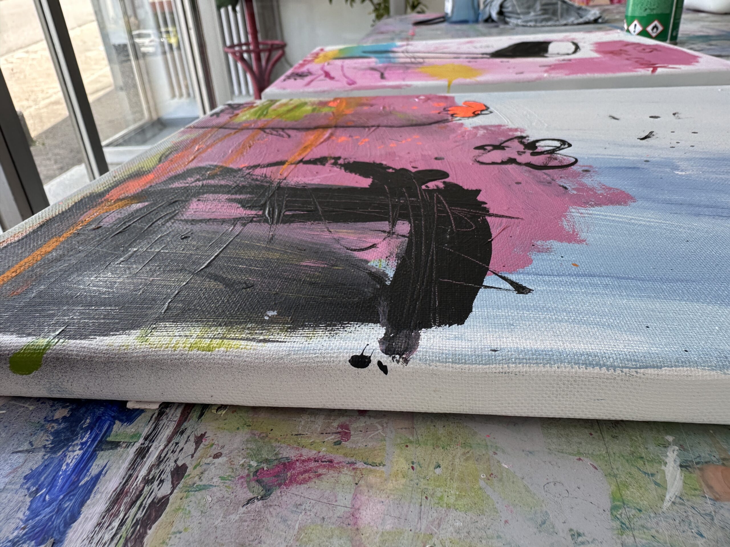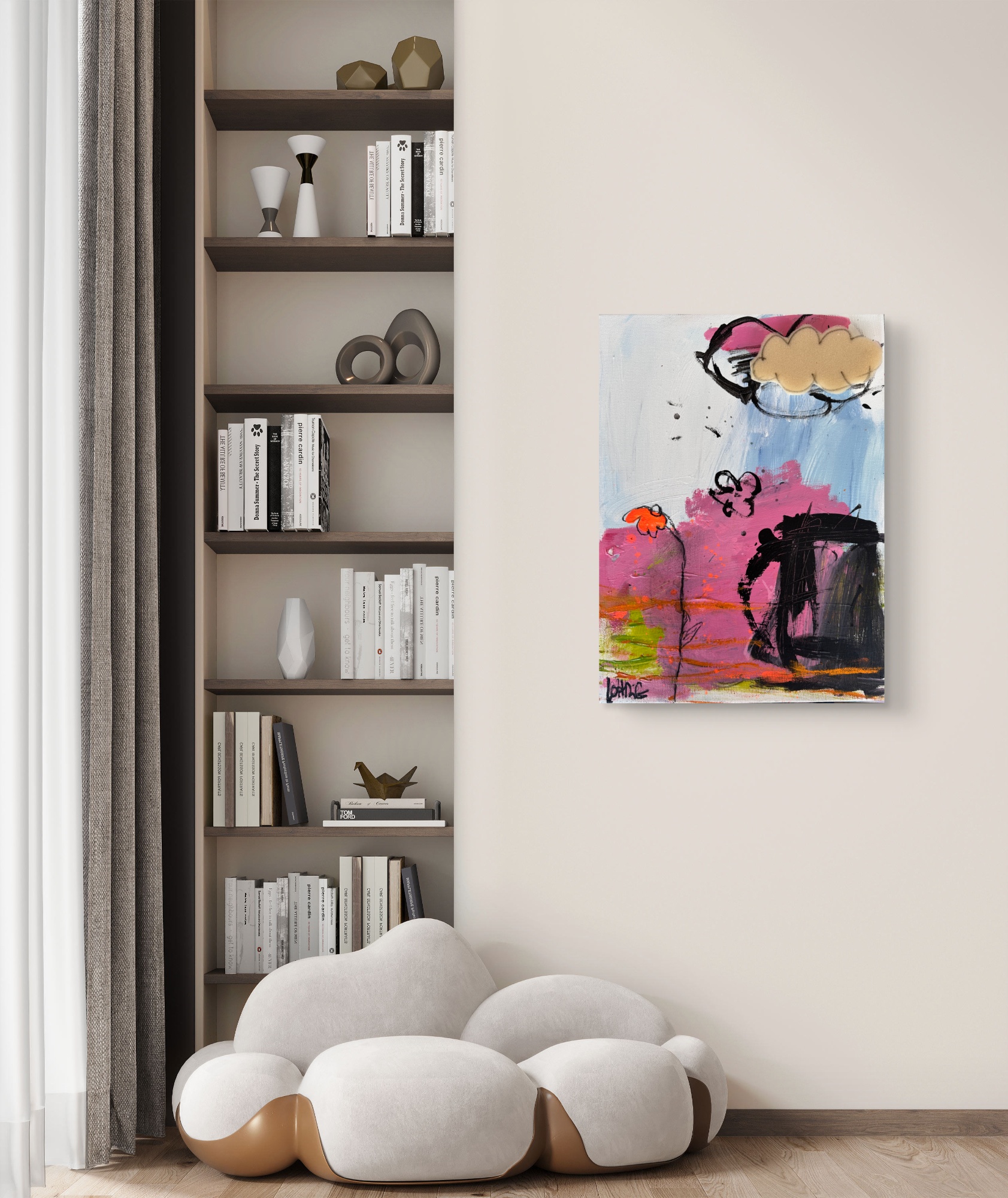 Ein tänzerischer Balanceakt zwischen Farbe, Form und Linie, Fläche und Raum, Abstraktion und Gegenstand, Bild und Schrift. Die Leichtigkeit ist es, die uns in Lohrigs Werken entgegenspringt. Die Farben mit Lust aufgetragen, werden häufig mehrfach überarbeitet; immer bleiben die Spuren der unteren Schichten wahrnehmbar. Sie arbeitet mit Sprühfarben, Neon, pink.